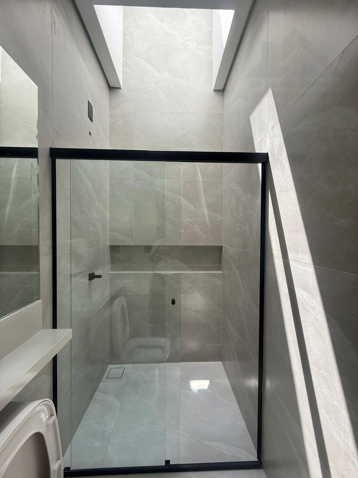 • Banheiros com espelhos e box instalados